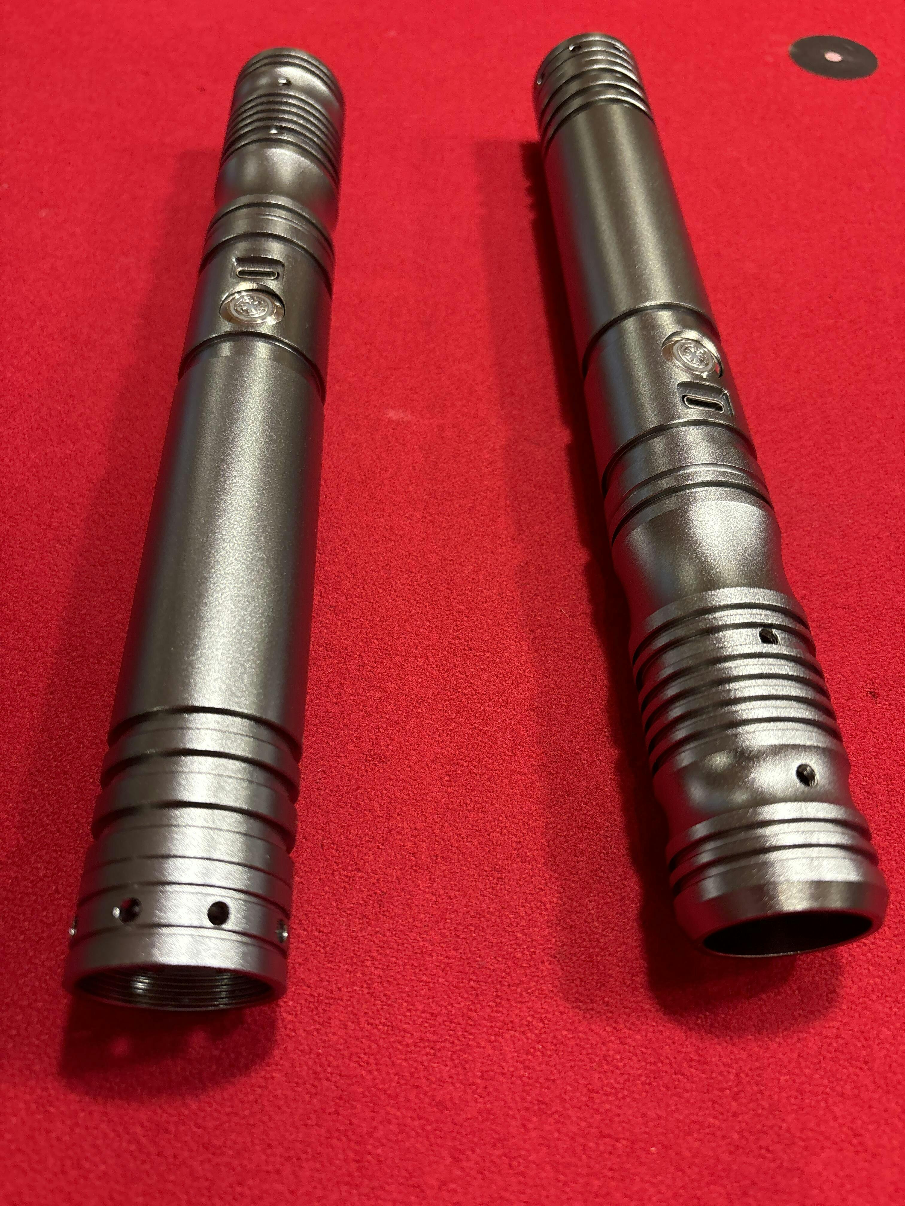 This set comes with two identical fully featured Padawan 2 sabers. You can connect them to make a saber staff and the included 36 Inch (91 Cm) blades make saber staff wielding easier. 36 Inch blades provide excellent balance and weight for spinning in either staff or single configuration.
