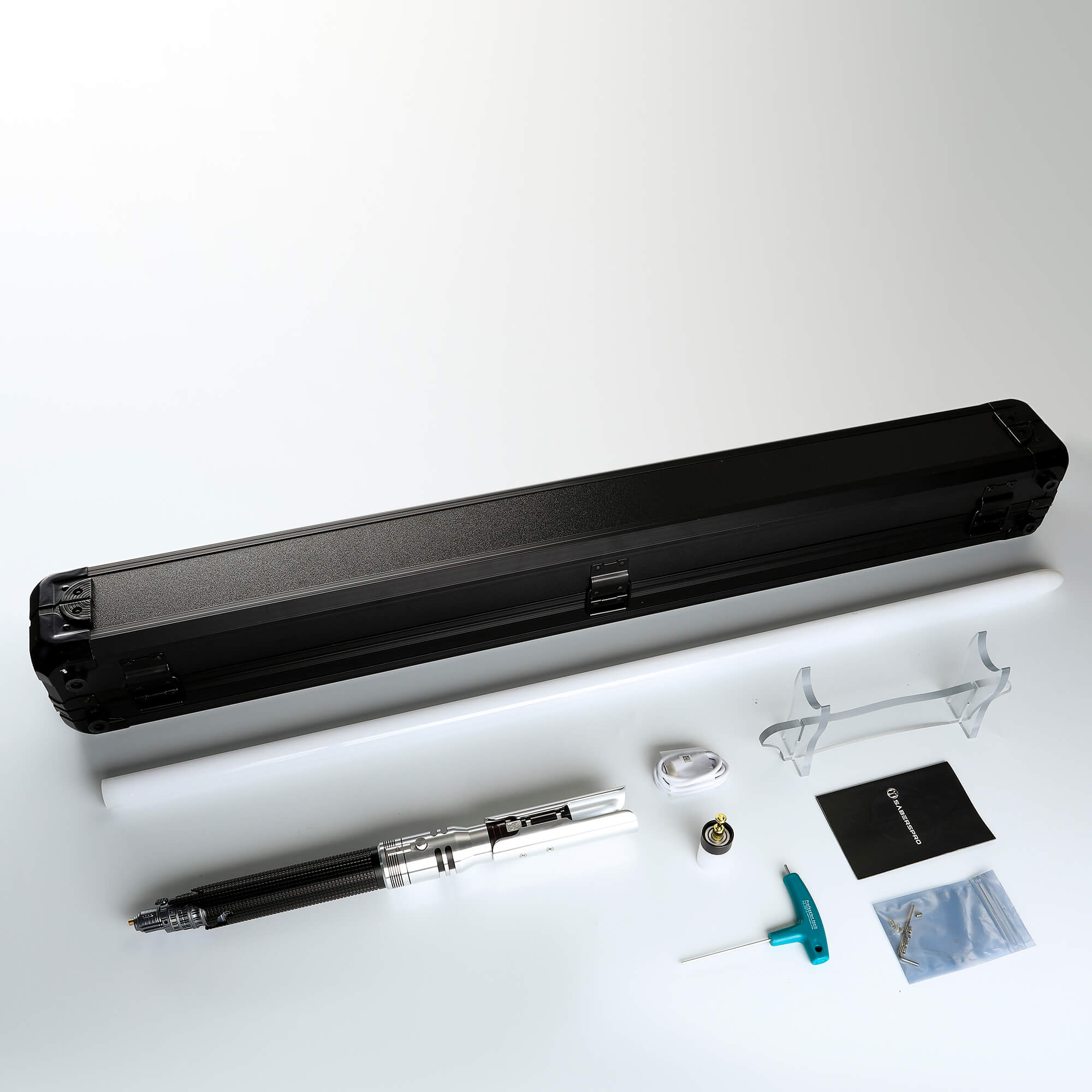 Con un corte en forma de U a lo largo del mango de aluminio aeronáutico T6 premium que complementa perfectamente el emisor de policarbonato, obtienes una apariencia exquisita para cualquier ocasión. No te preocupes; no sacrificamos el diseño para los duelistas. El mango largo y el agarre sutil aseguran que tengas más que suficiente espacio y potencia para cualquier forma que desees desatar en público o en privado.