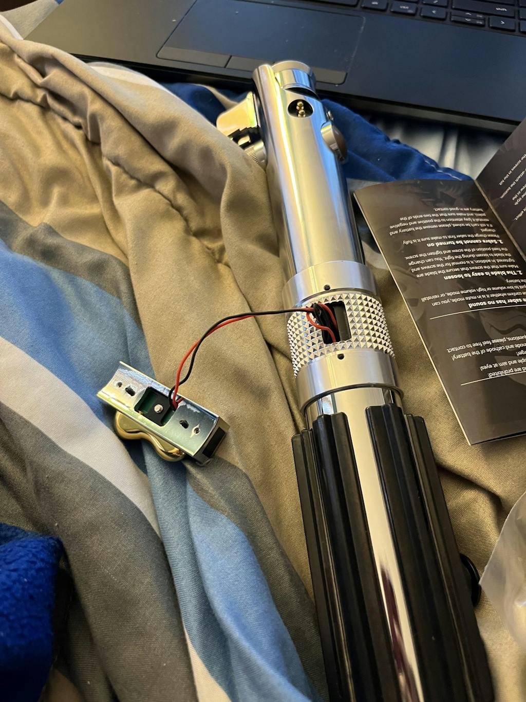 Saber émet des bruits de sabre laser réalistes en réponse au mouvement. La dernière carte son offre des sons de mouvement de sabre précis et contrôlés.