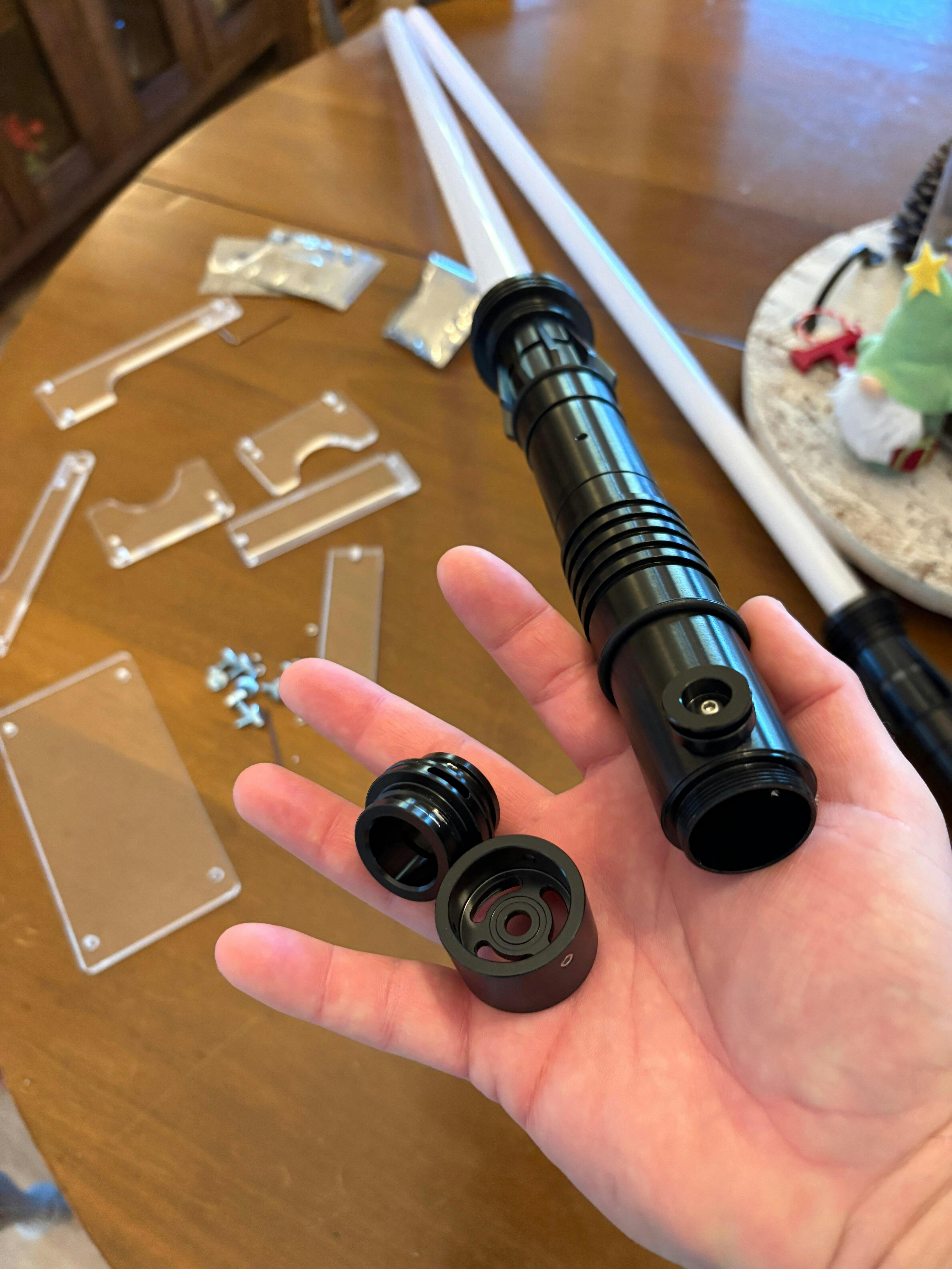 My son picked this light saber out for Christmas. We paid over $200 for a light saber that has ZERO instructions on assembly. It came with 4 packs of various sized screws and different size Allen wrenches with no explanation of where they go. We also bought the “Premium” stand that can be configured two ways… well guess what, it came in like 10 pieces with ZERO instructions on the two configurations or how to assemble it.