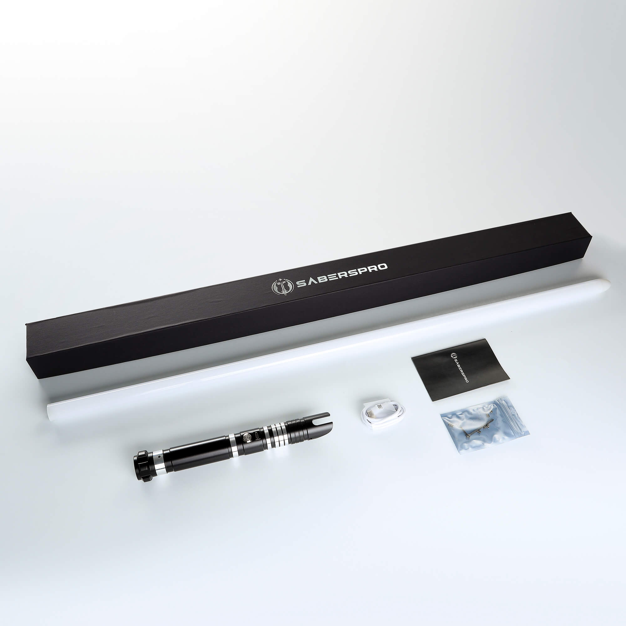 The hilt is made from high-quality T6 Aircraft Aluminum metals, giving it a sturdy and durable feel in the hand. In addition, the blade is constructed from tough, resilient polycarbonate materials, allowing it to withstand even the most intense lightsaber battles.