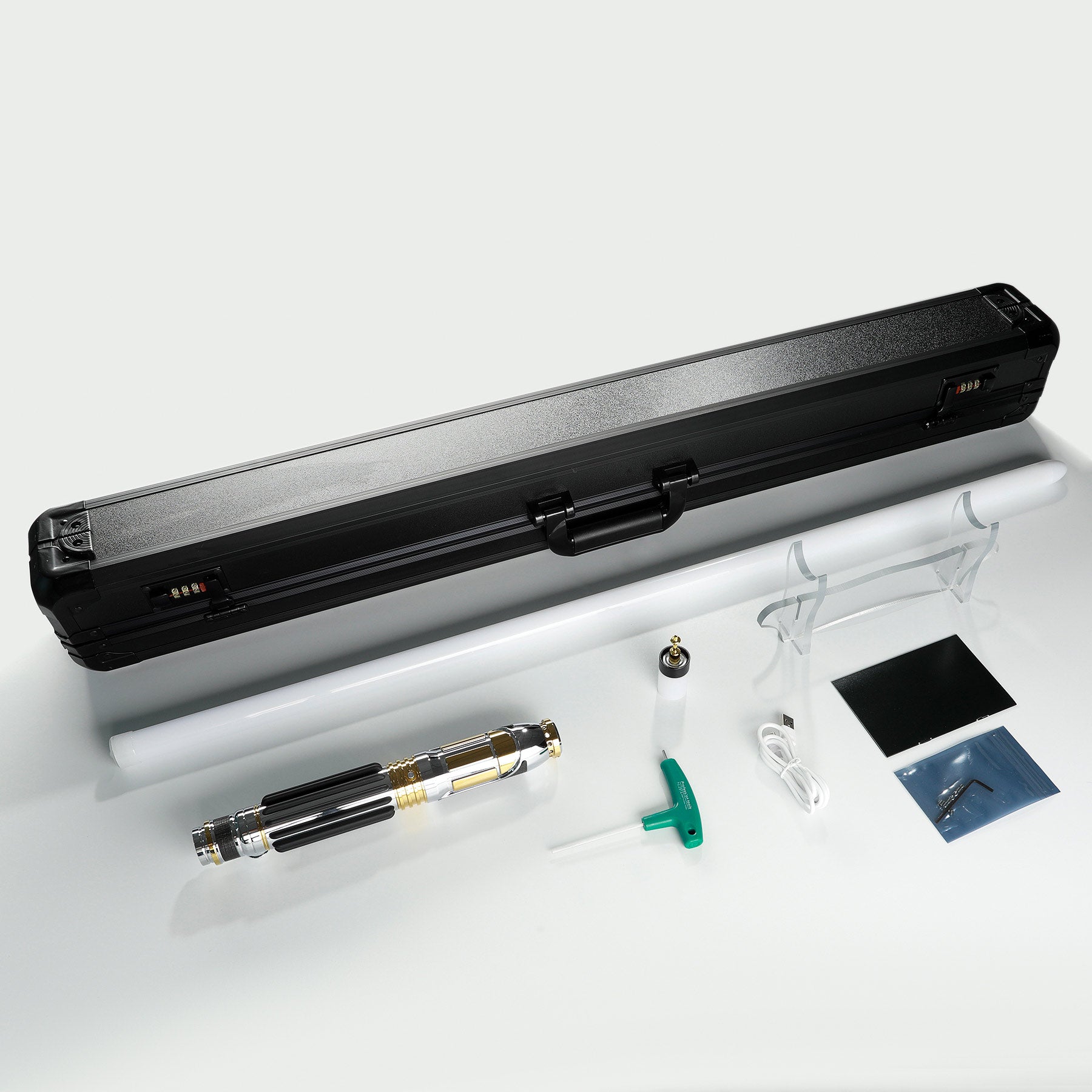 Not only do you get a durable T6 Aircraft Aluminum hilt to grip, but also a massive array of soundscapes and lighting effects that will elevate the overall presentation of this unique saber. Perfect for beginners or those who are looking to expand their collection.